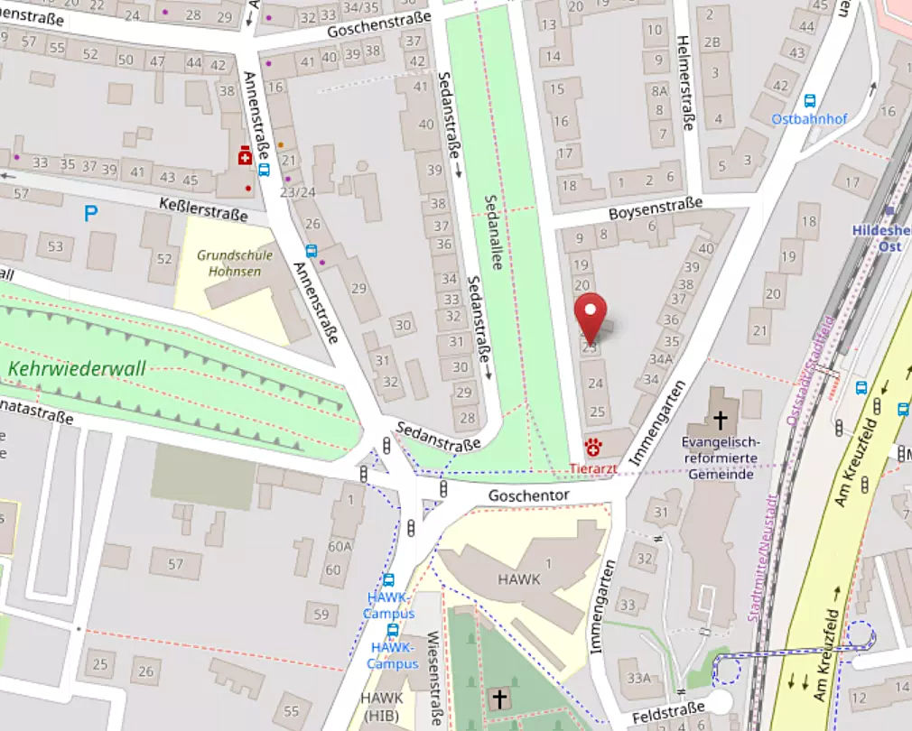 Routenplaner zur Sedanstr. 23 in Hildesheim